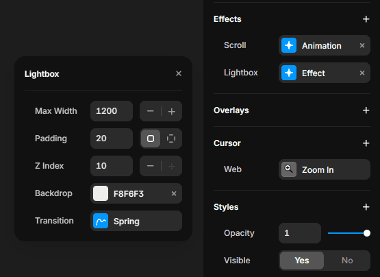 Select multiple images at once and add a Lightbox from the Effects panel.