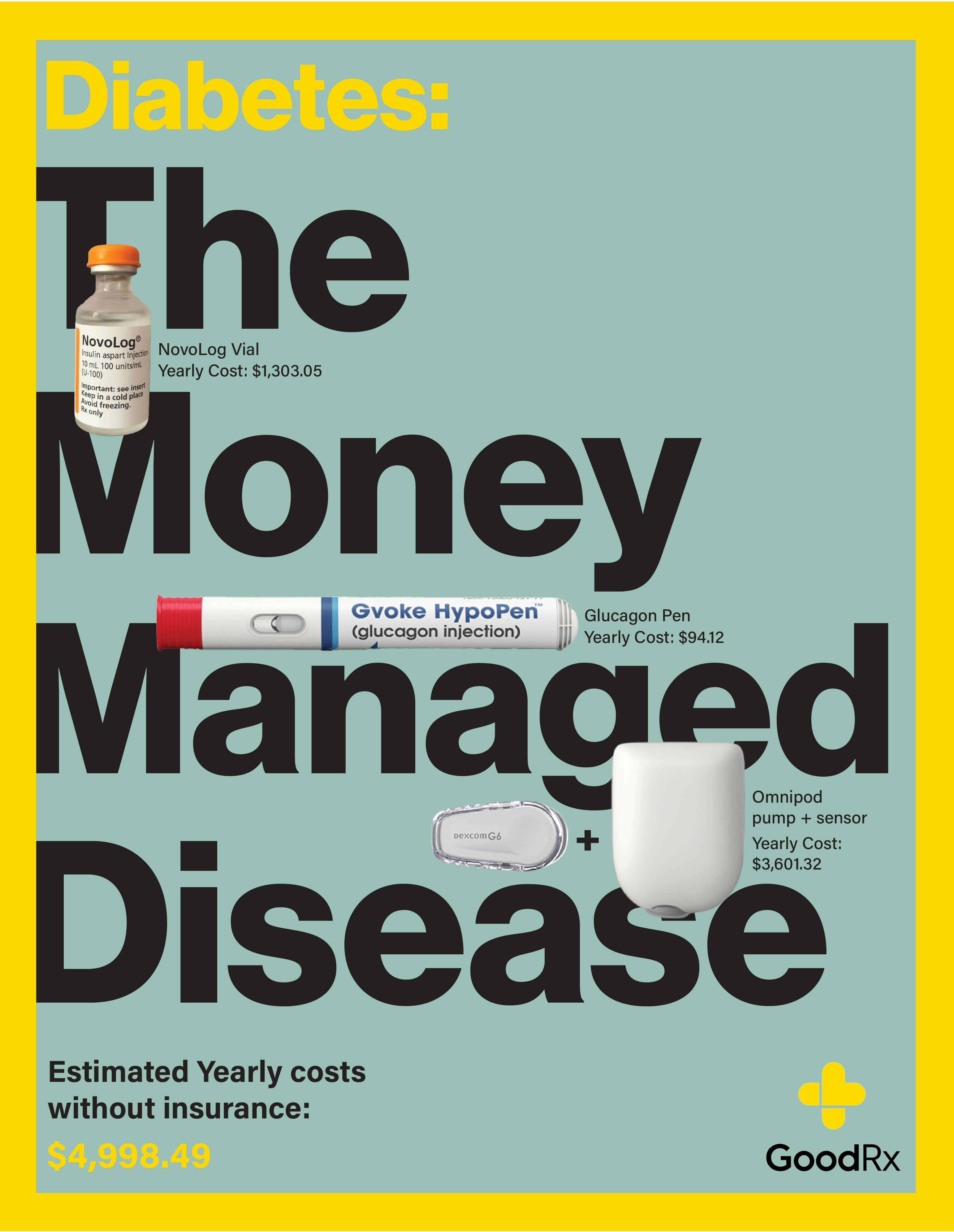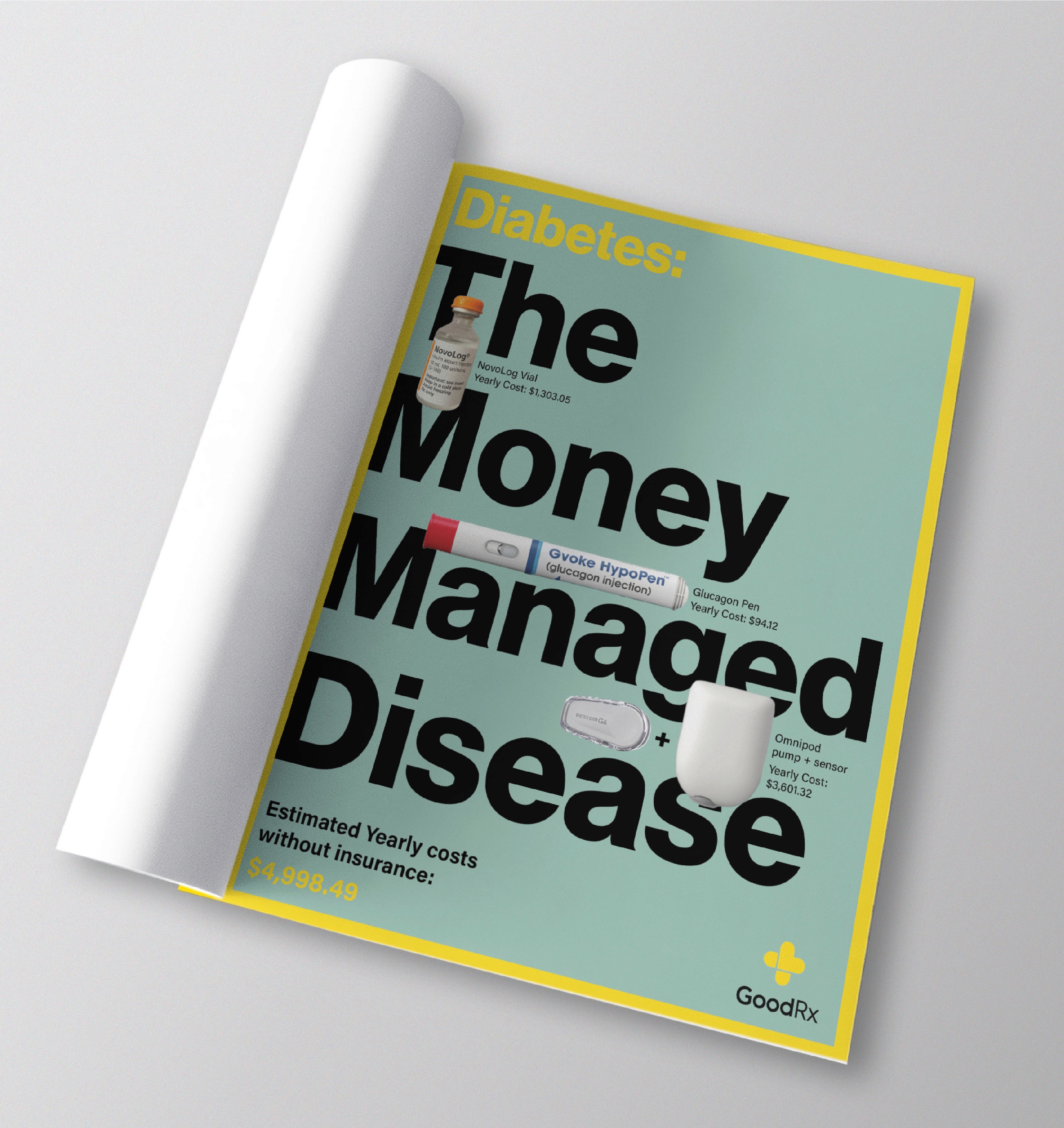I created a type- and image-driven advertisement for GoodRx focused on the rising cost of managing Diabetes and how the service can help make medications more affordable. The layout balances bold typography and visuals in a clear, attention-grabbing way so the message is easy to understand at a glance.