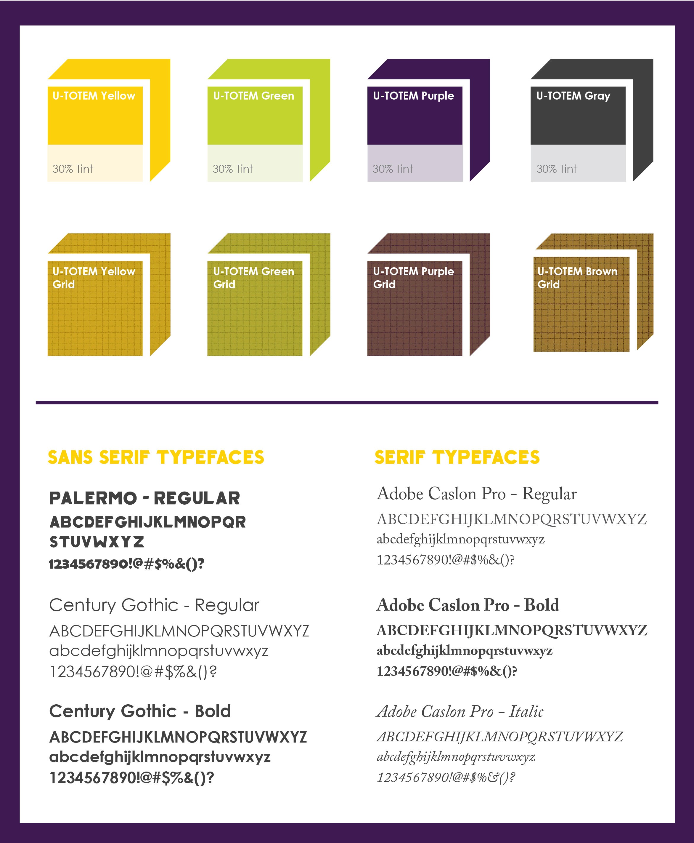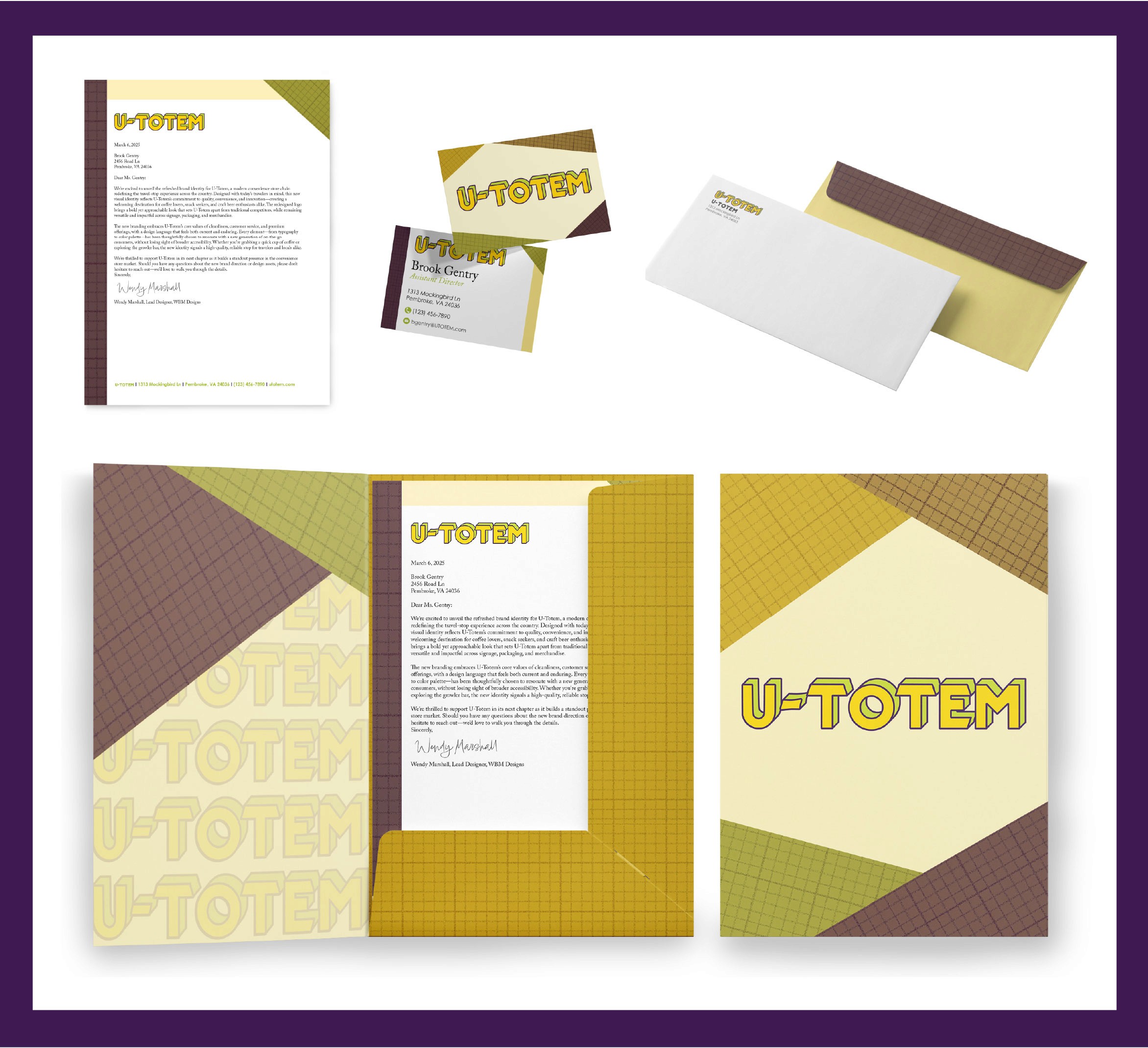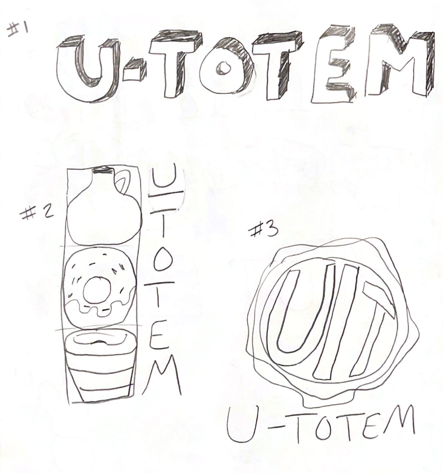 Logo option 3: This logo’s main icon turns the ‘U-T’ in ‘U-Totem’ into ‘U/T’ surrounded by coffee rings. The reason for this change is to bring a fresh feel to the convenience store industry with this rebranding, and to appeal to the youngest generation of shoppers and travelers. The colors were chosen to give the brand a welcoming, cozy feel that will draw travelers in and make them feel like their visiting their favorite coffee shop from home. The typeface was chosen for it’s imperfect, friendly, welcoming feel that the audience will appreciate.