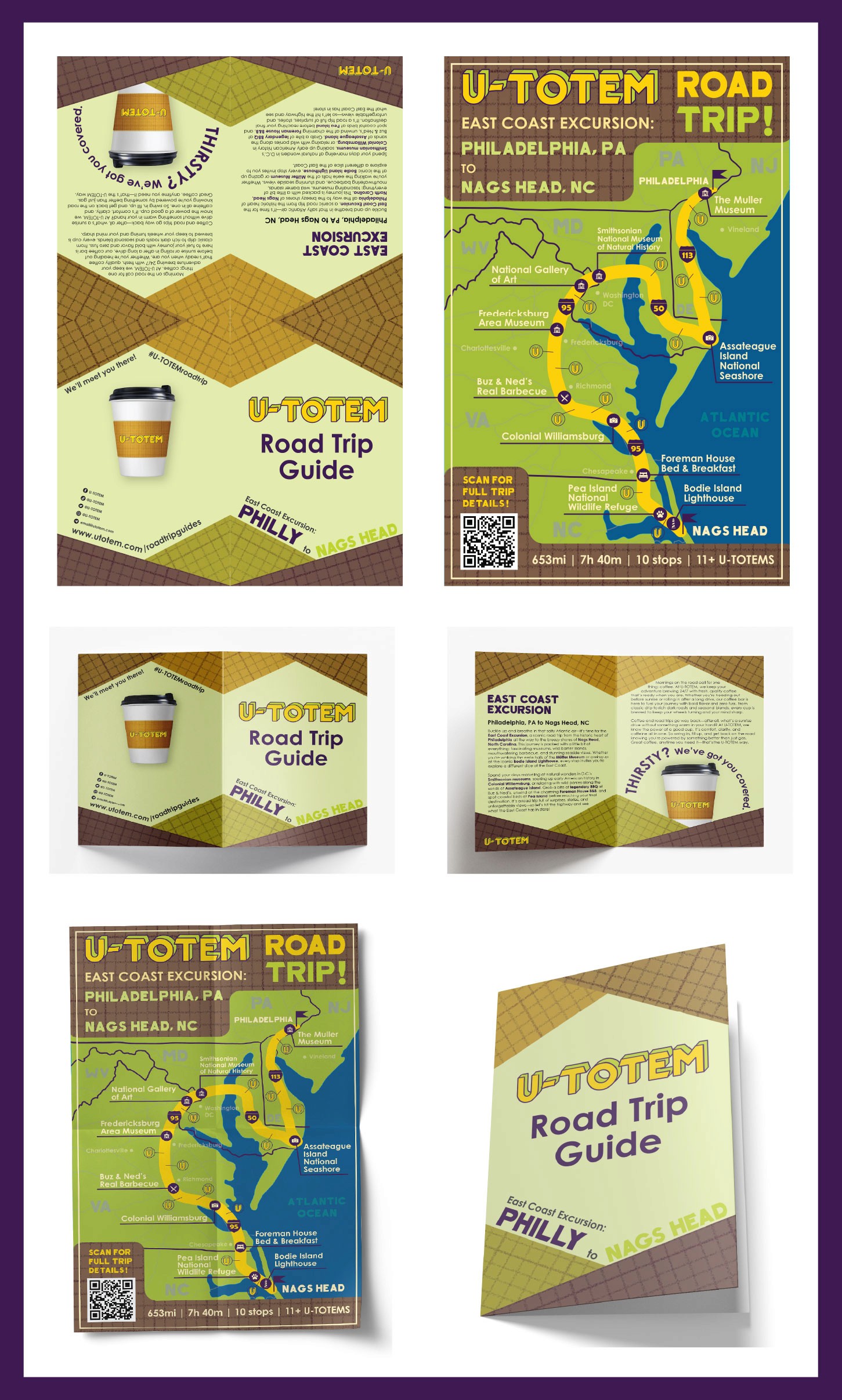 I developed a refreshed brand identity for U-Totem, including a new logo, visual system, stationery, and a comprehensive logo and branding framework. The project also featured a multi-platform ad campaign and a set of fold-out brochures with regional road trip maps highlighting tourist destinations and store locations, positioning U-Totem as an ideal stop when you’re on the road.